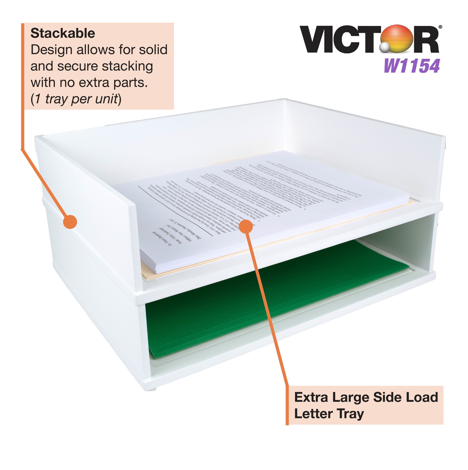 The W1154 Stacking Letter Tray provides a side load letter size desk tray that is large enough for folders. Letter trays nest securely on top of one another for solid stacking up to 5 high.