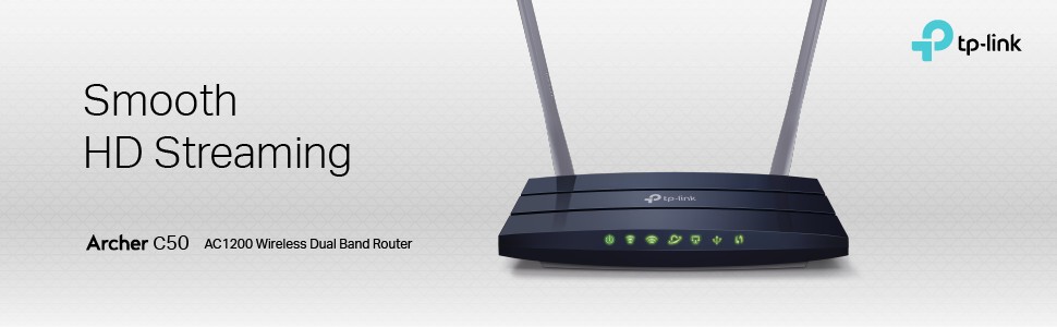Upgrade your home entertainment network to powerful AC1200 Wi-Fi with the Archer C50. Experience smoother HD action sequences over dual 5GHz (867Mbps) and 2.4GHz (300Mbps) bands, whether for gaming or streaming. Four fast ethernet ports provided reliable wired connectivity for more quests and achievements. Easily share files, photos, and music across your network using the USB ports.