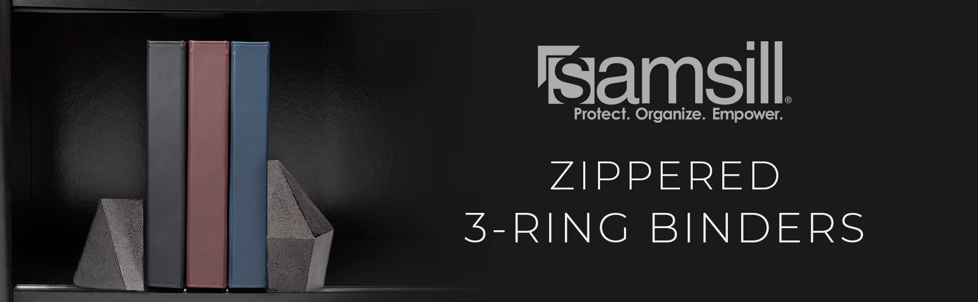 Classic zipper binders come with three color options, secure zipper closure and silver corner accents.