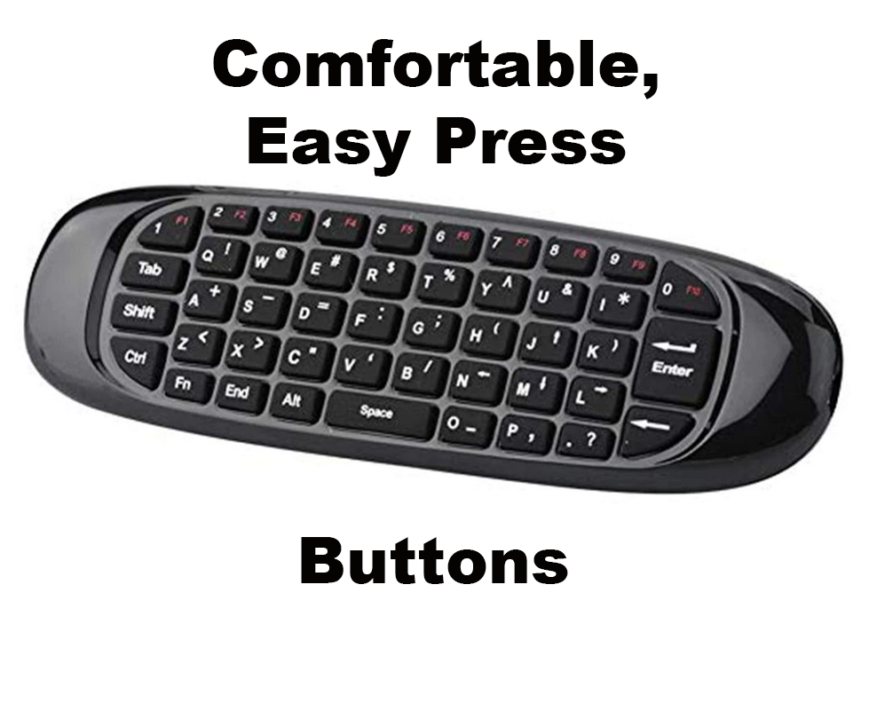 4XEM’s C120 is a remote controller with the multi-function of Air Mouse, keyboard, Multimedia (Android, Mac OS, etc.) control and motion sense support. With an easy to install USB receiver and 2.4G wireless connection this remote is a great plug-in and play option. Additionally, with the use of its gyroscopic recognition and sensor capabilities, this remote provide accurate and simple control of its mouse cursor.