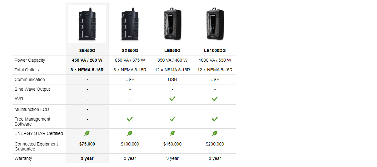 CyberPower's patented GreenPower design reduces power consumption using a compact charger and power inverter to create an ultra-efficient backup power system.