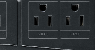Surge protected outlets safeguard your connected equipment from damage during an AC power surge or spike.