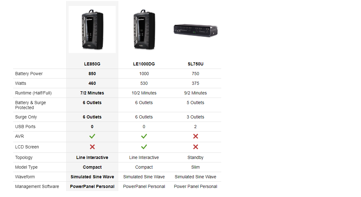 The LE850G is equipped with (4) widely spaced outlets to accommodate large transformed-based plugs without compromising the access of other outlets.