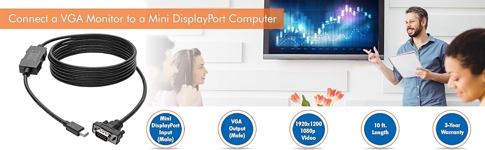 This adapter cable helps you save money by making your current VGA monitor compatible with a Mini DisplayPort-equipped computer. Active digital-to-analog circuitry, premium double shielding and quality manufacturing ensure a clean, consistent video signal.