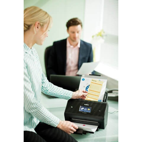 The ADS-3600W gives you the option to scan to a number of different destinations to help you manage your documents and workflows. You can scan documents to cloud applications such as Microsoft ® OneNote ® and OneDrive ® /OneDrive ® for Business, GOOGLE DRIVE™/GOOGLE DRIVE for Work™, EVERNOTE ® /EVERNOTE ® Business, BOX/BOX for Business, DROPBOX and more, directly from the easy-to-use 3.7” color Touchscreen display 6 Users can also scan directly to a USB flash drive 7 , shared folder, email server, and FTP/SFTP to quickly save, distribute, and share information. The ADS-3600W even supports scanning to compatible mobile devices using the FREE Brother iPrint&Scan app 8 .