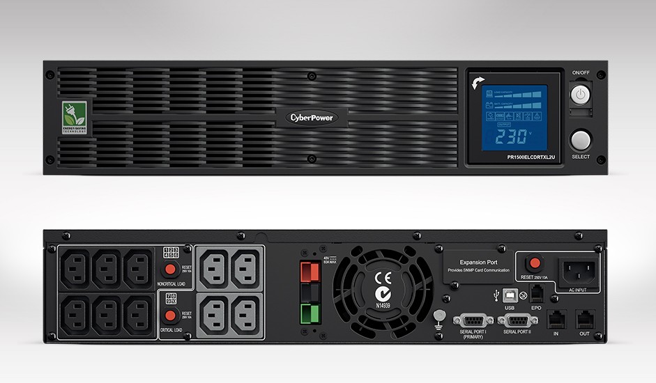 Displays real-time information about the status of the battery backup and power conditions. The LCD panel can be rotated for viewing on both horizontal or vertical tower installations.