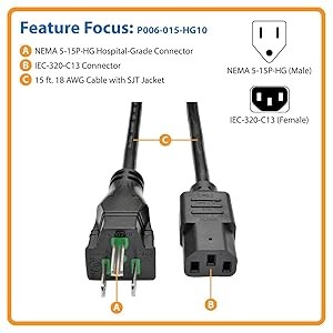 The P006-015-HG10 comes with a lifetime warranty. It’s manufactured in compliance with strict RoHS specifications, reflecting Tripp Lite’s commitment to environmental responsibility.