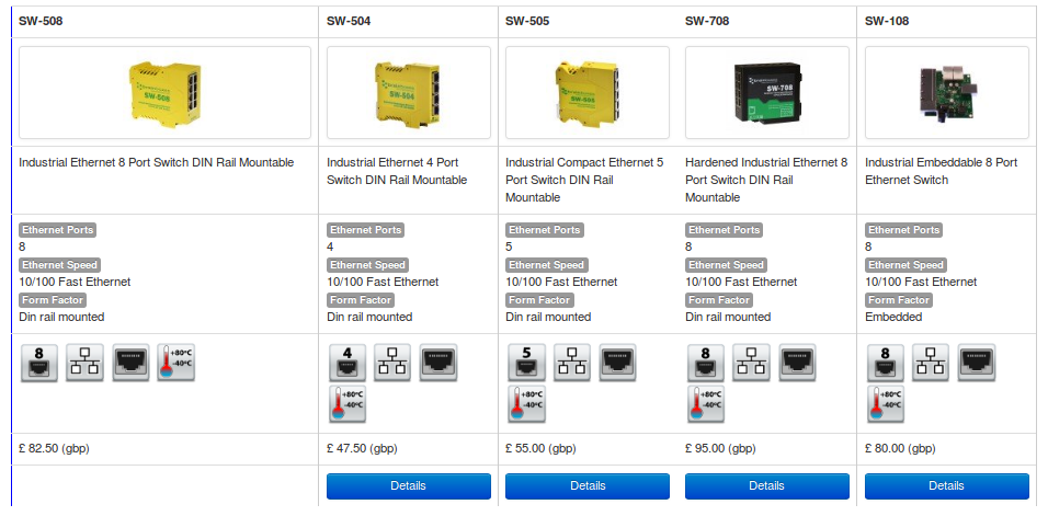 Industrial Ethernet 8 Port unmanaged switch. Galvanically Isolated Ports. Industrial temperature range of -40°C to +80°C (-40°F to 176°F) and dual input redundant power supply with wide voltage range means it can be powered from USB or on the 24V factory floor. Power terminal is removable with numbered pins for easy wiring. Power consumption is optimised based on the status of the link device. No software required. Ideal for factory floor, in vehicle and marine applications.