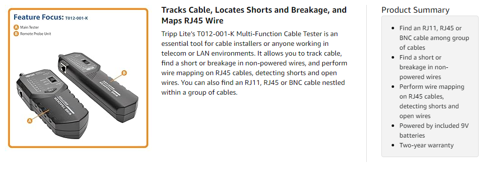 The T012-001-K is powered by included 9-volt batteries in the main tester and remote probe unit. The probe unit’s LED flashlight is handy for working in dark areas. Included headphones help you work in noisy environments. An adjustable volume button lets you fine-tune the tone generator. When not in use, the T012-001-K can be stored in its carrying case.