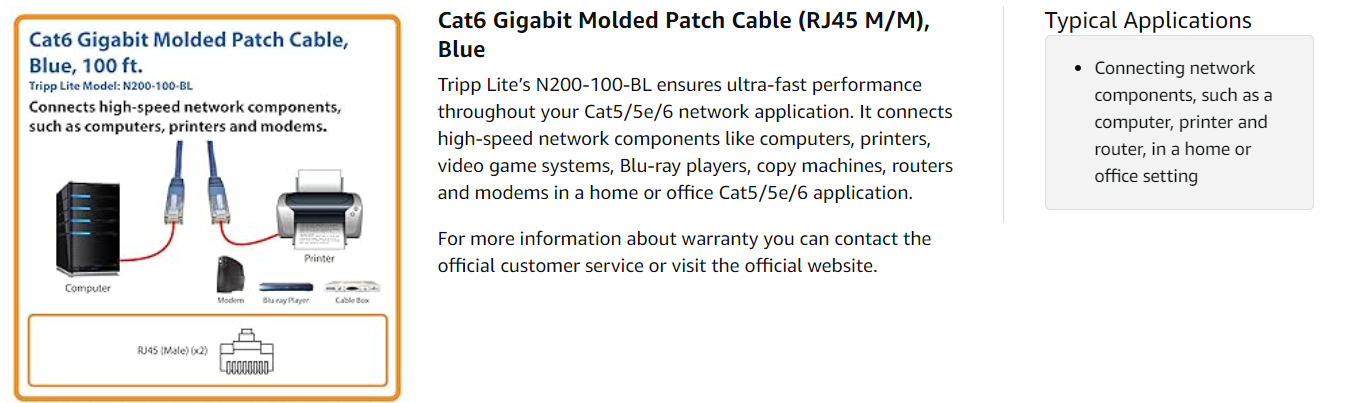 The N200-100-BL comes with a lifetime warranty. It’s manufactured in compliance with strict RoHS specifications, reflecting Tripp Lite’s commitment to environmental responsibility.