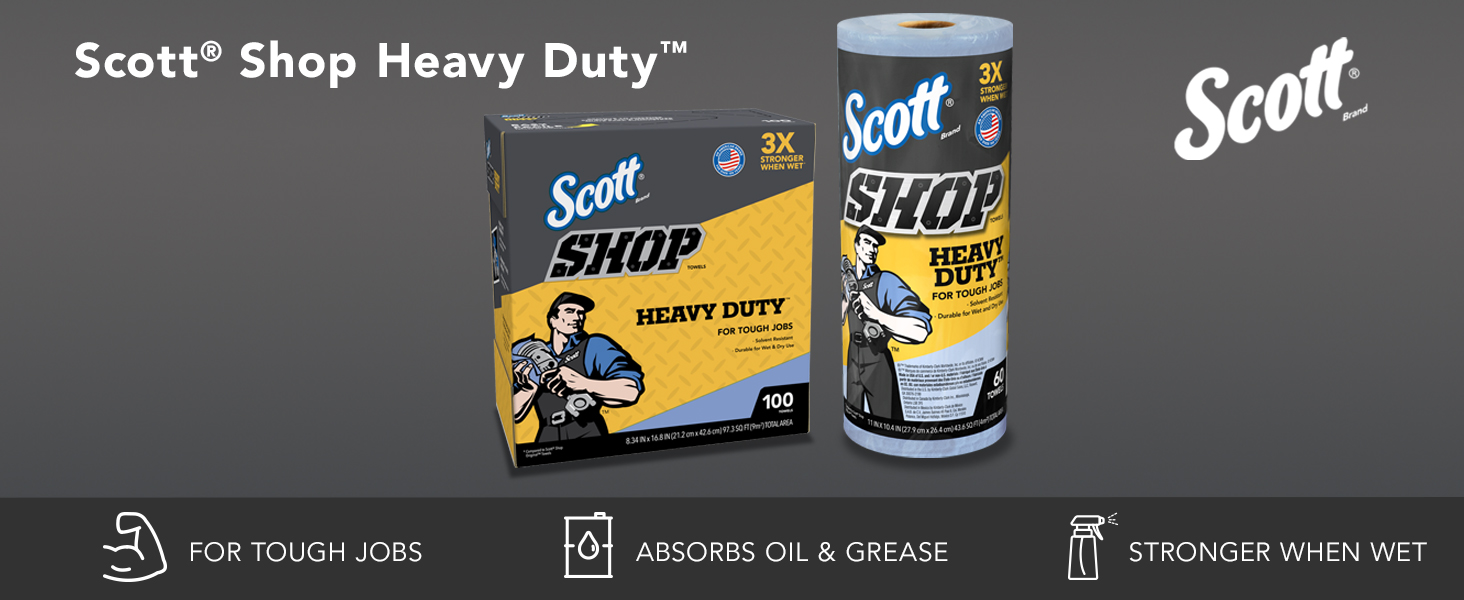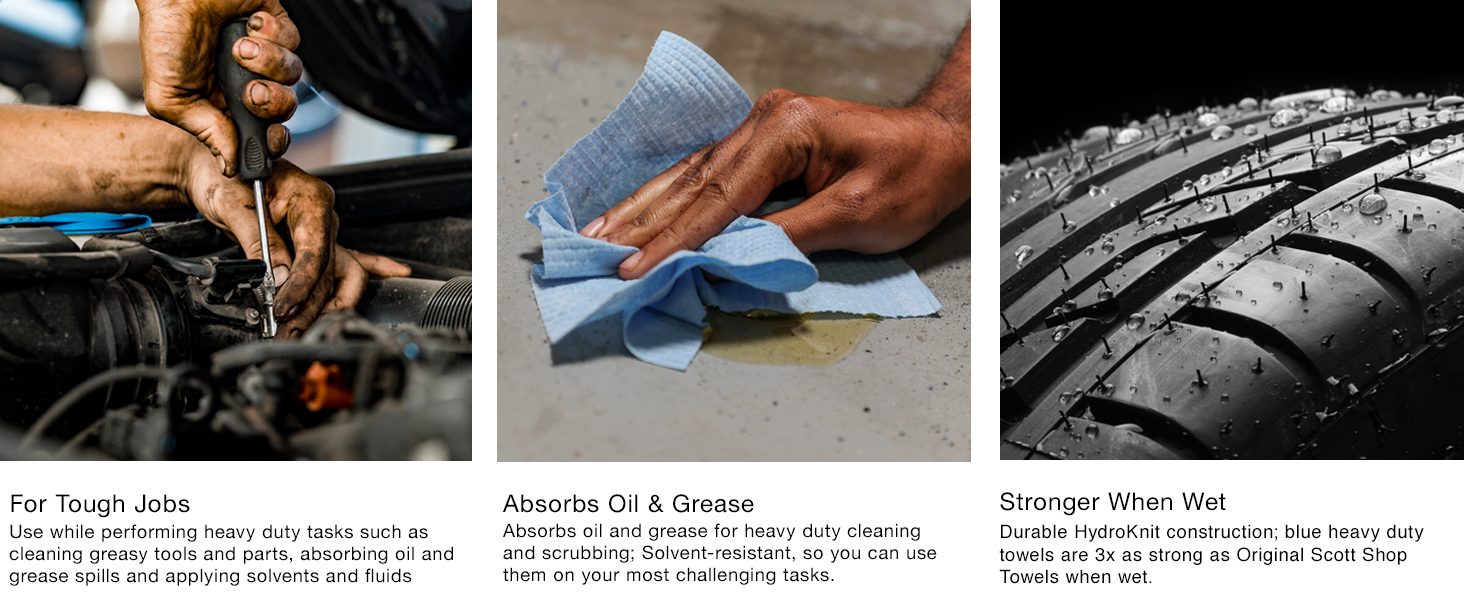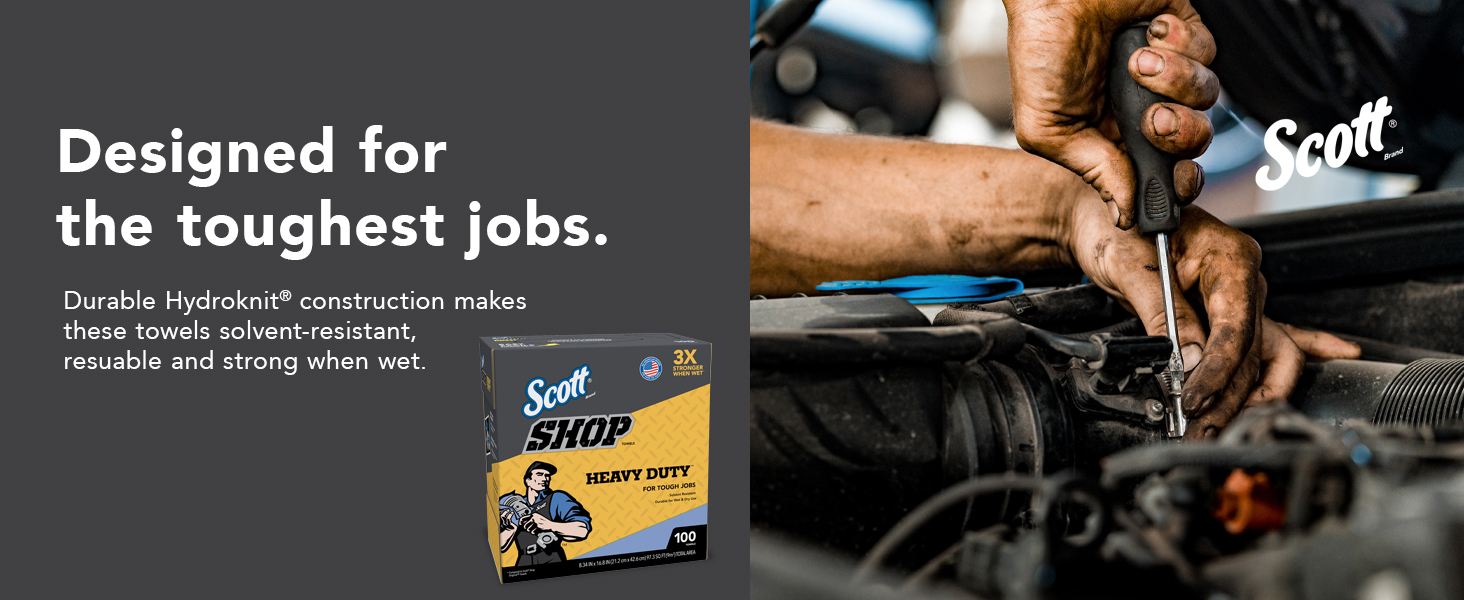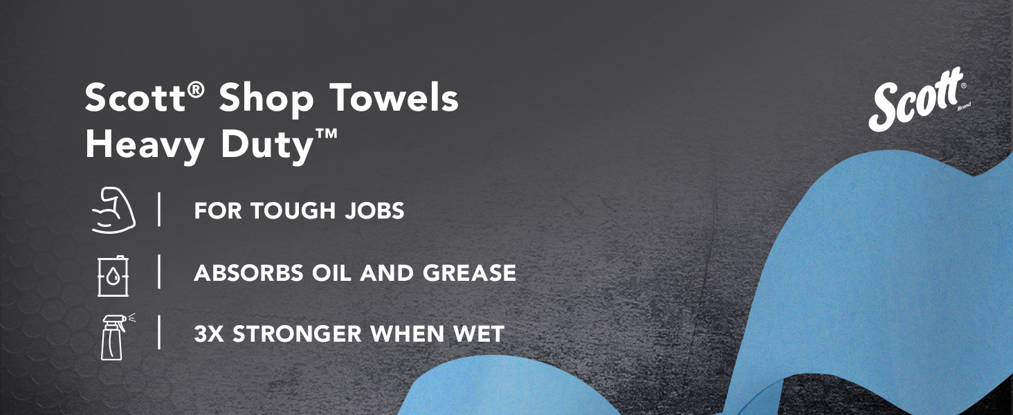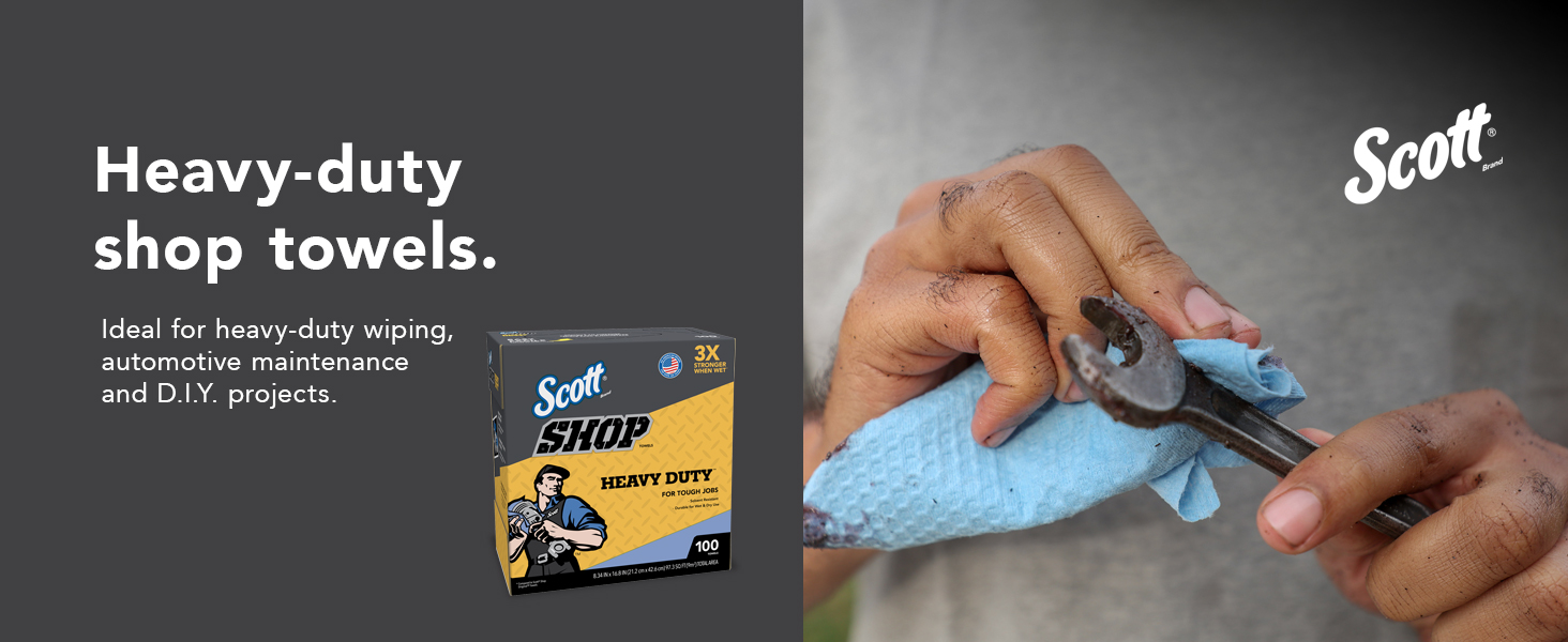 Scott® Shop Towels Heavy Duty™ are made by Scott®, the #1 Shop Towel Brand. When you have a tough task to tackle, Scott® Shop Towels Heavy Duty™ are a must-have tool. These heavy duty shop towels feature durable HydroKnit® technology and are 3X stronger when wet than Scott® Shop Towels Original™. Built for extreme usage, they are solvent-resistant so you can use them on your most heavy duty tasks, such as cleaning surfaces, tools, and heavy-maintenance wiping. Whether you own an automotive garage, are a DIY weekend warrior or working around the house, make sure Scott® Shop Towels Heavy Duty™ are in your list of supplies. Get the job done with Scott® Shop Towels Heavy Duty™ , made by Scott®, the #1 Shop Towel Brand (Circana, Retail Tracking Service, U.S. sales, 2021 & 2022.)