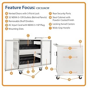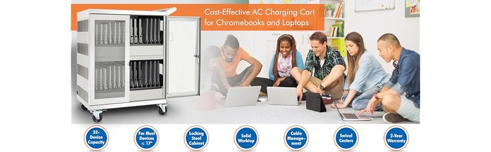 Versatile features help you meet the challenge of managing up to 32 Chromebooks, laptops or tablets in limited space.