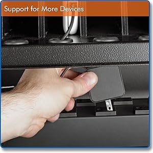Rubber grommets reduce wear on charging cords and keep them neat and organized.