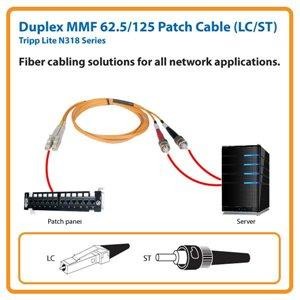The N318-50M comes with widely compatible dual LC and ST connectors that are thoroughly tested to ensure they meet Tripp Lite's stringent insertion loss standards. The connectors' edges are also beveled and color coded for easy and secure connection throughout your network.