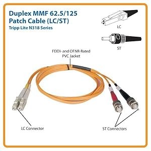 The N318-50M is manufactured using top quality materials. With 62.5/125 duplex fiber, a FDDI and OFNR-rated PVC jacket, sturdy connectors and fiber made from glass instead of a polymer, Tripp Lite's fiber optic cables are made to last in high-demand data center and networking applications. The N318-Series is compliant with RoHS (Reduction of Hazardous Substances) standards, reflecting Tripp Lite's commitment to environmental responsibility.