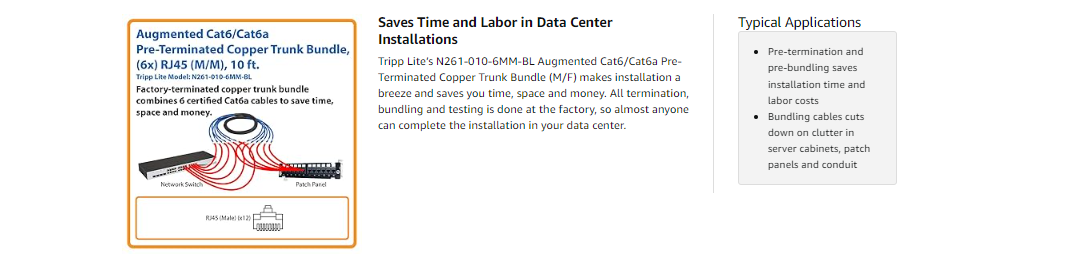 When you choose this genuine Tripp Lite trunk assembly, you get superior performance plus peace of mind. We’re so confident of its quality that we warrant it to be free from defects in material and workmanship for life! The N261-010-6MM-BL is also manufactured in compliance with strict RoHS specifications, reflecting Tripp Lite’s commitment to environmental responsibility.