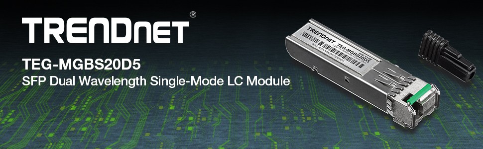 TRENDnet’s TEG-MGBS20D5 when paired with the TEG-MGBS20D3 creates a long distance, single strand fiber solution with a range of up to 20 KM (12.4 miles). Alternatively grow your pre-existing two-strand fiber connection, and turn it into two separate single-strand fiber connections. The SFP interface is compatible with standard SFP slots and offers a 1000BASE-LX SFP interface.