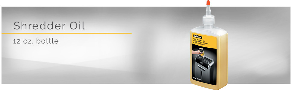 Fellowes Powershred Performance Oil. 12 ounce plastic squeeze bottle with extended nozzle ensures complete coverage. For Cross-Cut and Micro-Cut shredders.Regularly oiling your Fellowes shredder maximizes performance and extends shredder life. It is recommend you oil your cross-cut shredder, each time you empty the waste basket, or at least twice a month. Your micro-cut shredder should be oiled more frequently; ideally after every 15 minutes of use.