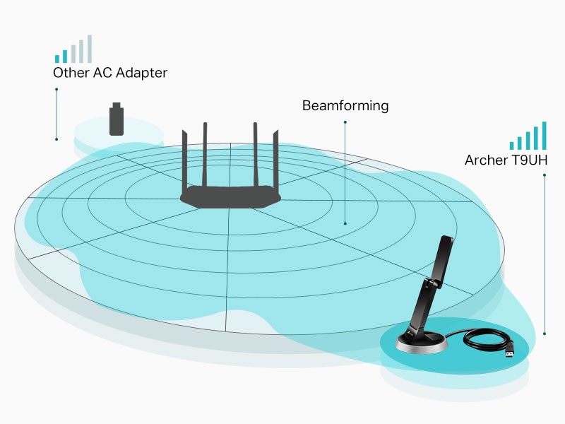 A 3ft. USB 3.0 cable makes it easy to find a spot for the Archer T9UH in your workplace. The adapter can be effortlessly attached or removed from your computer as needed.