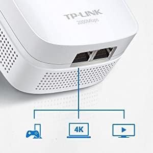 The powerline adapters each include two Gigabit Ethernet ports to provide uninterrupted internet connection to your smart TV, gaming console and laptop.