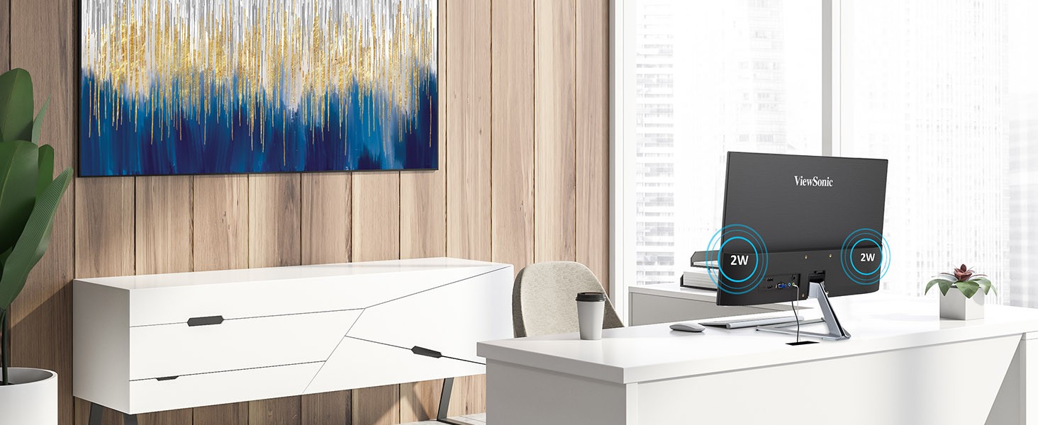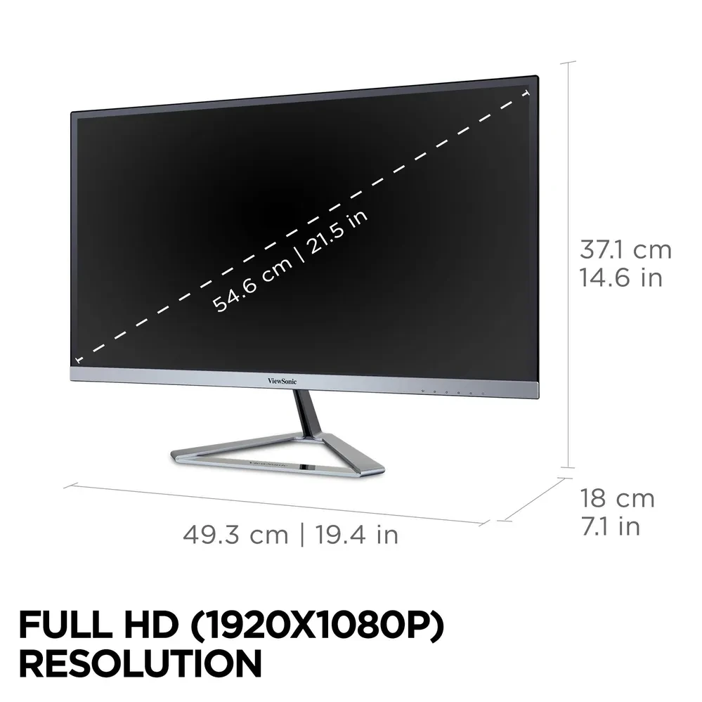 The ViewSonic ® VX2276-smhd is a sleek 22” (21.5” viewable) Full HD monitor with a modern and minimalist style perfect for home use. With SuperClear ® IPS Panel technology, this monitor offers best-in-class screen performance with ultra-wide viewing angles. A premium ID includes an ultra-slim profile, unique desktop stand, and a sleek edge-to-edge frameless design, that when combined with vivid 1920x1080 resolution and dual speakers, deliver an immersive viewing experience for home entertainment and multimedia applications. HDMI, DisplayPort, and VGA inputs offer flexible connectivity options for both computing and gaming environments, while ViewSonic’s exclusive ViewMode™ feature provides intuitive presets for optimized screen performance in different applications. In addition, Flicker-Free technology and a Blue Light Filter help to minimize eye strain from extended viewing periods. With ViewSonic’s industry-leading 3-year limited warranty, this monitor is a solid long-term investment that combines style and high performance for the home.