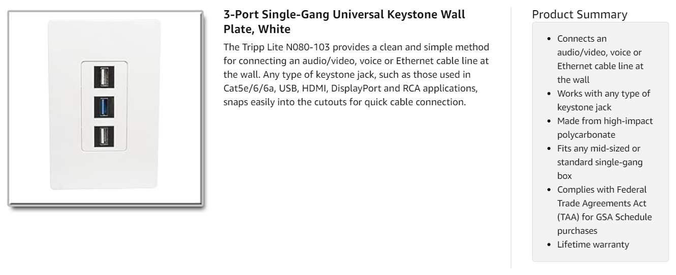 The N080-103 comes with a lifetime warranty. It’s manufactured in compliance with strict RoHS specifications, reflecting Tripp Lite’s commitment to environmental responsibility.