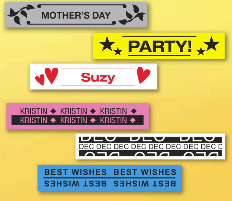 Personalize your labels for file folders, storage bins, school items, gift bags and more. It's easy to add a personal touch with the various font styles, frames and fun deco patterns.