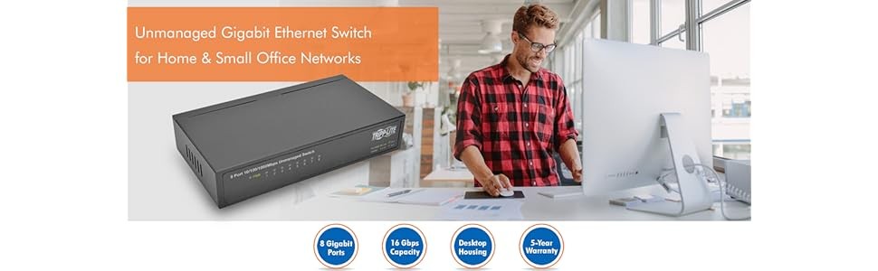 Unmanaged Ethernet switches provide plug-and-play network convenience. Simply connect your network cables, and your Gigabit network is ready to go. Easy-to-read LEDs communicate port-by-port network activity at a glance. If you ever need to expand your network, it only takes a moment to connect more switches through the auto-MDIX Ethernet ports.