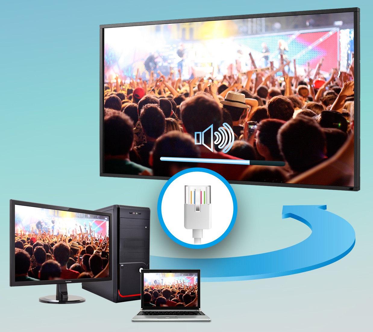 Designed with dual integrated speakers, this display combines incredible screen performance with stereo sound for an immersive multimedia experience. An additional speaker can be added via the SPDIF audio-out port for expanding sound to different locations in the room or venue, via cable.