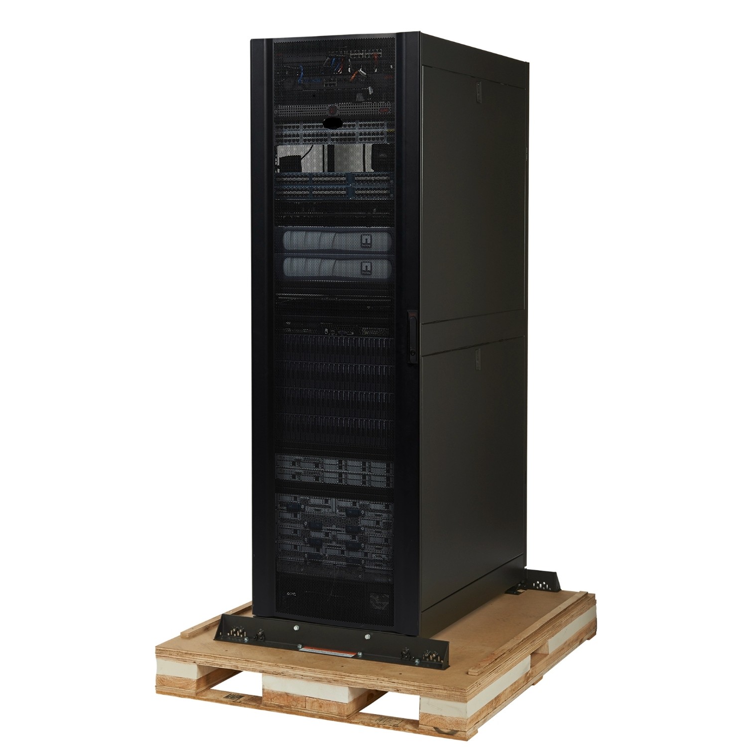 A multi-layer pallet supports and evenly distributes the cabinet load to absorb impact and vibration during integration and transit. The robust equipment fastening system includes 24 additional fasteners to support the load, even under high vibration, during transportation and shipping.