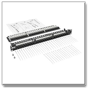 Intended for RJ45 Ethernet, 568B and Cat5/5e applications, this patch panel is color-coded for 568A/B wiring and is specially designed for easy punchdown termination. Just remove its upper level, punch down the lower cables, replace the upper deck, and punch down the upper cables. Ports are clearly numbered for quick and easy identification.