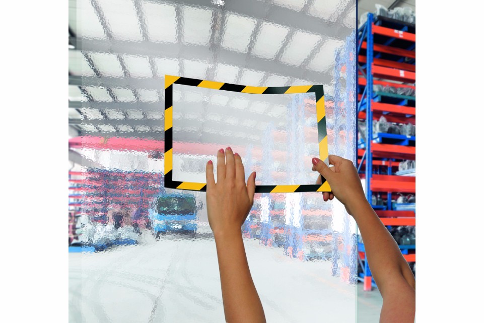 Dual-colored frames fully compliant with ISO 3864-4 for safety colors