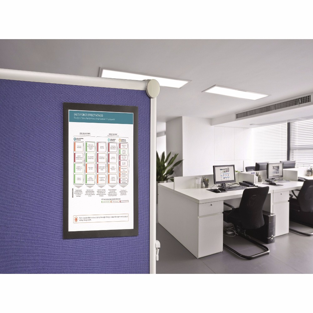 Duraframe Grip is a contemporary, professional frame with Microplast fastener for secure attachment to textile sufaces. Works beautifully for trade shows and on bulletin boards, and is ideal for presenting and organizing materials.