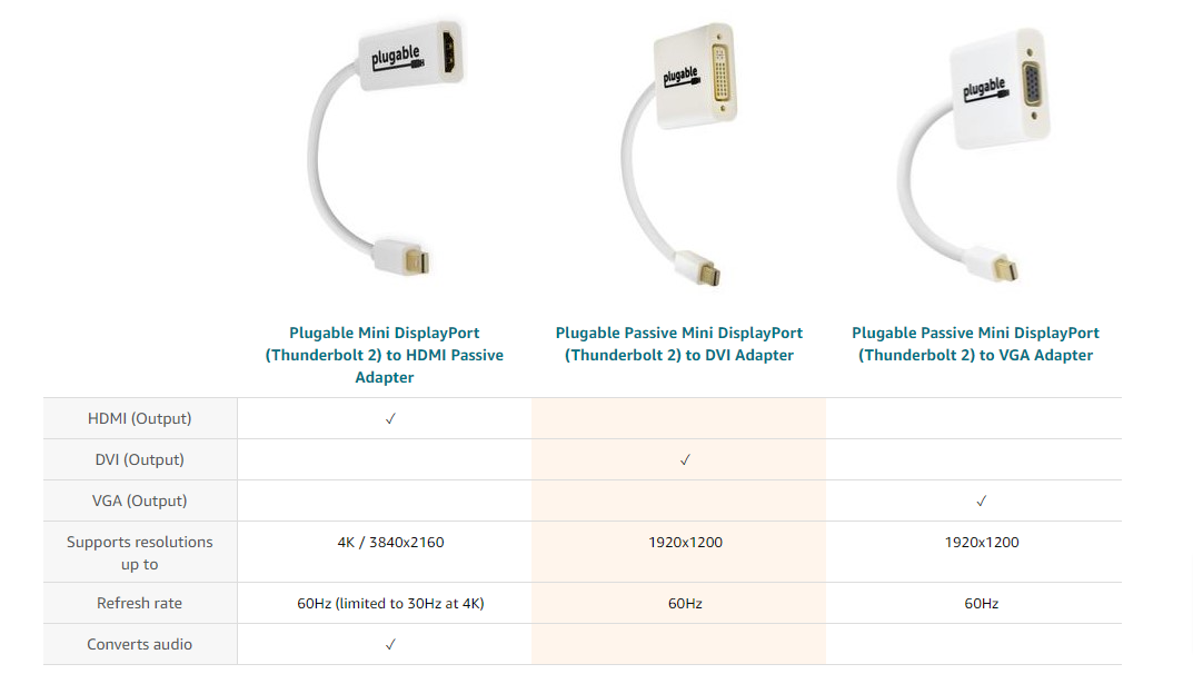 - Plugable Mini DisplayPort (Thunderbolt 2) to DVI Passive Adapter.