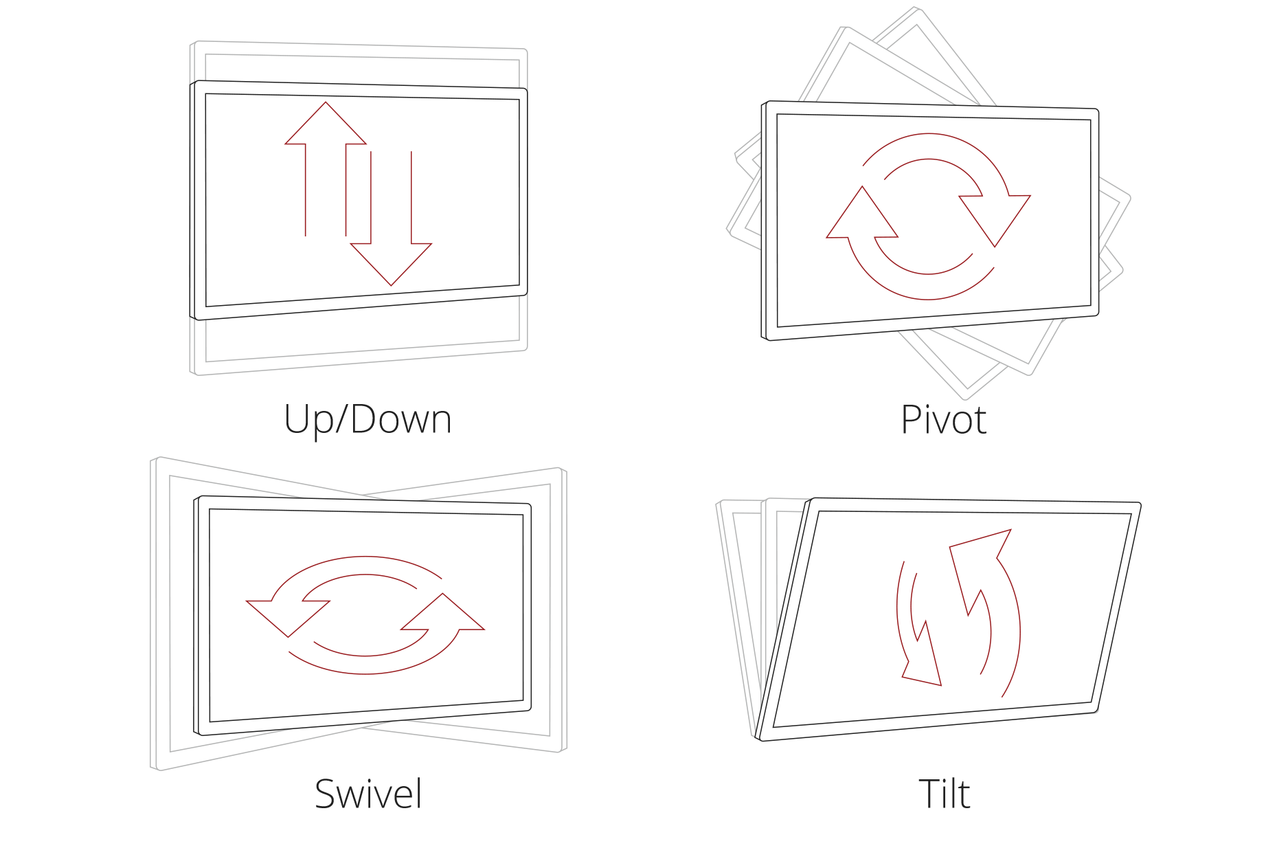 With advanced ergonomic features, ViewSonic monitors are designed to provide a greater range of adjustment for increased productivity and comfort. Users can reduce eyestrain and physical fatigue by adjusting the monitor via swivel, pivot, tilt, and height adjust options.