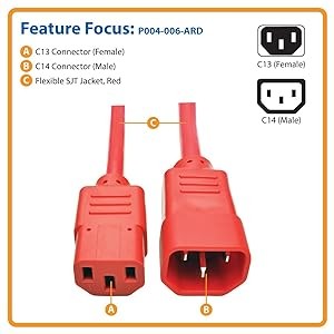 The P004-006-ARD features a red SJT jacket and fully molded red ends, allowing you to easily identify your connections in a crowded rack or workstation.