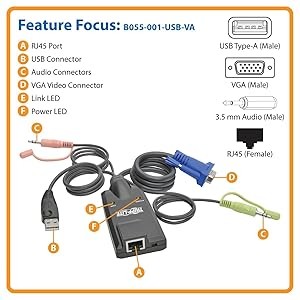 Using Cat5e/6 cabling allows your server to be located up to 164 ft. away from the KVM switch. By eliminating bulkier KVM cables, the B055-001-USB-VA also allows cabling to run through conduit and other tight spaces, guaranteeing maximum flexibility when setting up your network application and saving space in your rack or network closet.