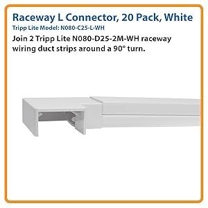 Made from durable ABS plastic, the one-piece N080-C25-L-WH is colored white to blend elegantly into any home or office décor for a sleek, professional installation. It snaps directly over the raceway joint to hold the two sections together.