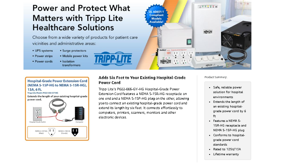 This gray, 13A cord is tested to ANSI/UL 62 and 817 as well as CAN/CSA C22.2 no. 21 and 42 standards, making it a safe, reliable power solution for hospital environments.