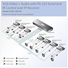 Tripp Lite’s B160-Series A/V Over IP solutions offer great flexibility and expandability in a point-to-point installation. The distance can be expanded easily and inexpensively with a basic unmanaged network switch, such as Tripp Lite’s NG5. By incorporating multiple managed switches with Internet Group Management Protocol (IGMP), you can scale up to a multi-in, multi-out system supporting up to 64 transmitters for sources and up to 255 receivers for displays in your installation. You can even mix and match technologies between digital and analog sources and displays, allowing you to use equipment you may already have.