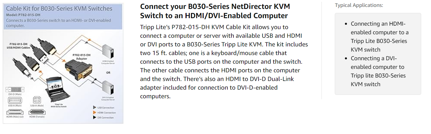 For peace of mind, the P782-015-DH comes with a lifetime warranty. It’s also manufactured in compliance with strict RoHS specifications, reflecting Tripp Lite’s commitment to environmental responsibility.