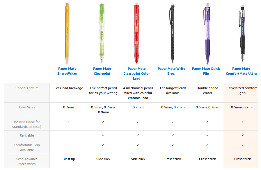 Great for Homes, Offices, and Standardized Tests Paper Mate ComfortMate Ultra Mechanical Pencils use high-quality #2 leads that write cleanly and are ideal for jotting notes and taking standardized tests. These mechanical pencils are refillable, so you can easily top them off with leads and continue writing without interruption.