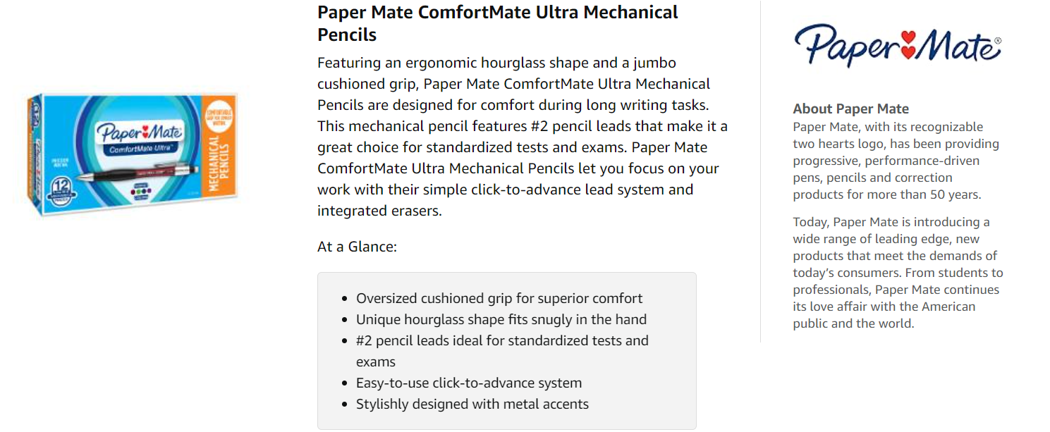 Made of durable plastic with shining metal accents, Paper Mate ComfortMate Ultra Mechanical Pencils are a stylish choice for both personal and professional use. The integrated metal clip allows you to easily attach the pencil to a binder, notebook, or pocket and take with you anywhere.