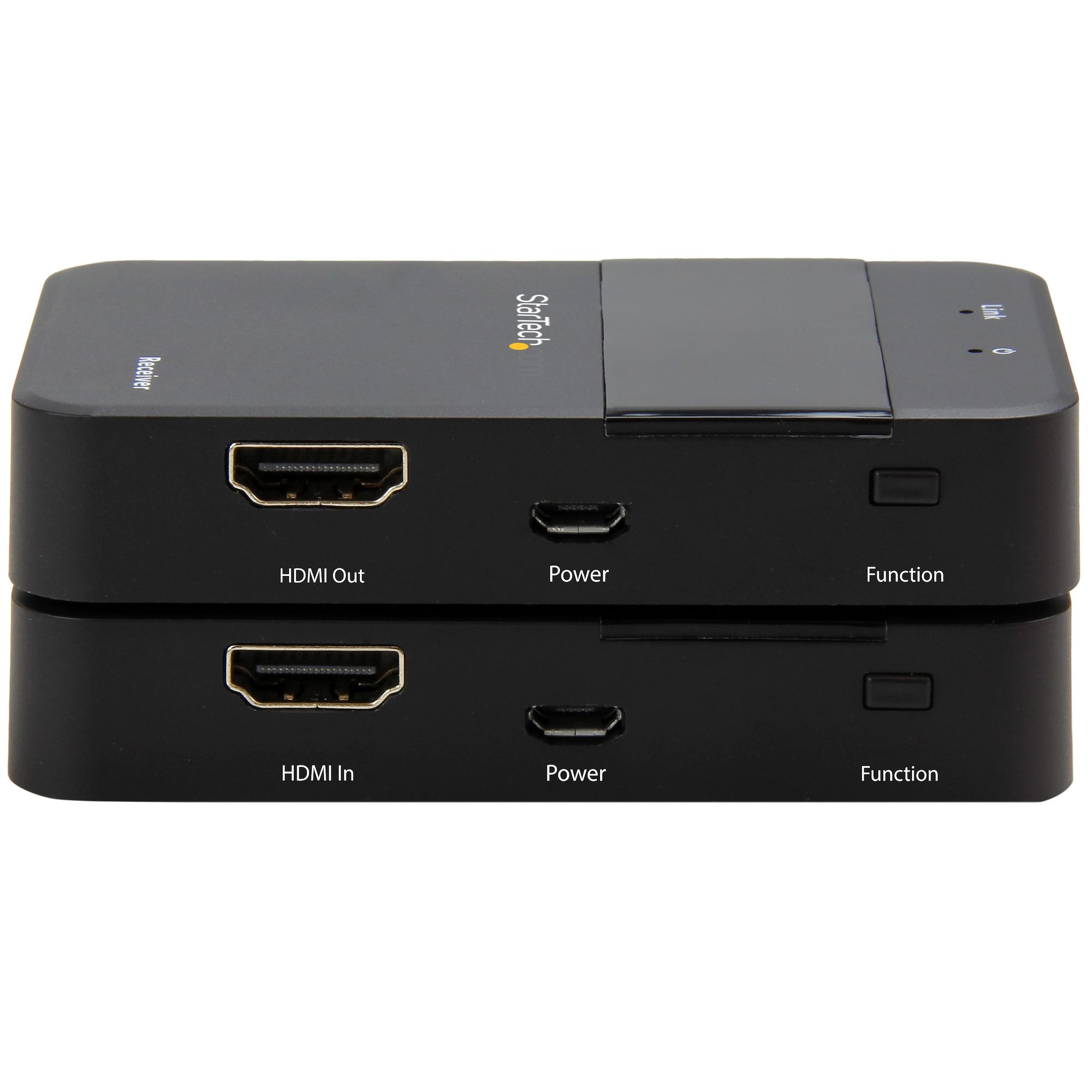 This HDMI® over wireless extender kit lets you extend your HDMI video signal wirelessly to a remote location, up to 65 ft. (20 m) away. You can extend or mirror your laptop computer to share uncompressed video, documents, music, and pictures in full HD. This is perfect for sharing ideas with your colleagues on a boardroom display or projector.