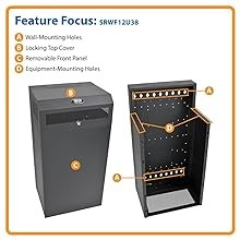 Constructed from heavy-duty steel with a durable black powder-coated finish, this cabinet has a maximum load capacity of 400 pounds. The SRWF12U38 provides the physical equipment and media security required for PCI DSS (Payment Card Industry Data Security Standard) compliance.