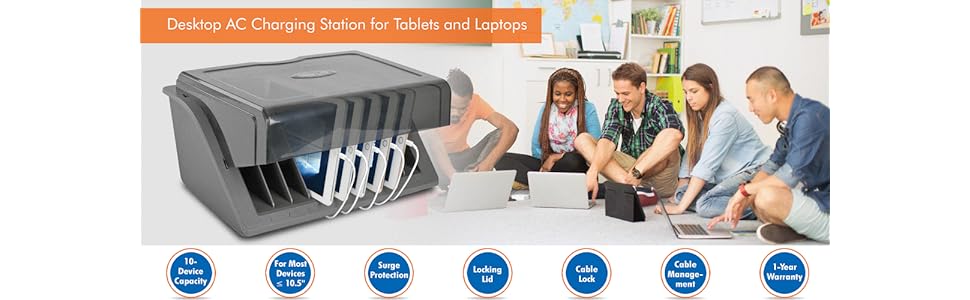 - Designed for quickly charging multiple tablets.