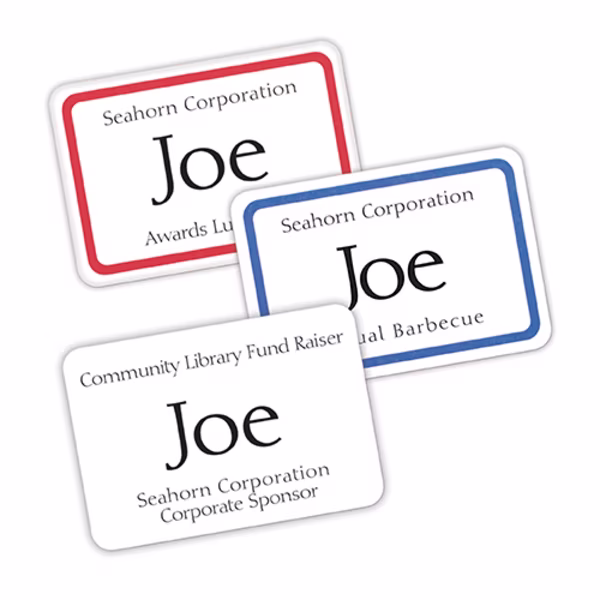 Avery offers a wide variety of name badges to fit your specific needs. Whether you need badges that employees and visitors can wear every day, badges for a multi-day meeting or seminar, or one-day badges for parties or events, there's a badge for you. With free Avery Design & Print Online you can easily personalize your badges using a laser or inkjet printer. Clip it, pin it, hang it or stick it, Avery has the right badge for you.
