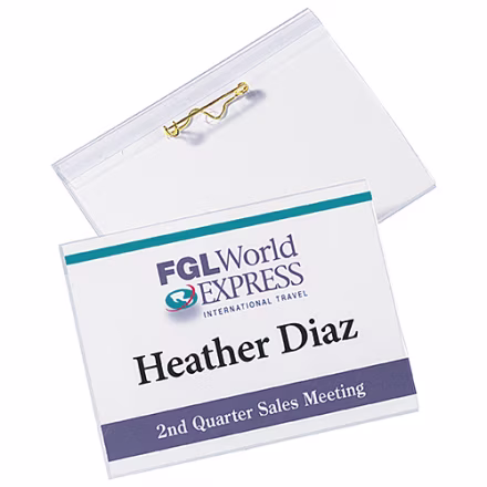 • Ideal for employee and visitor badges • Garment friendly clip holds firmly without damaging fabric • Clip attachment allows wearer to keep ID visible at all times • Feature an easy-to-load pocket style design • White, micro-perforated inserts separate cleanly, leaving smooth edges • Made from durable, soft plastic that displays names clearly