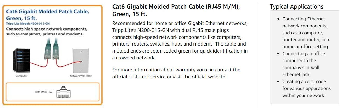 The N200-015-GN comes with a lifetime warranty. It’s manufactured in compliance with strict RoHS specifications, reflecting Tripp Lite’s commitment to environmental responsibility.