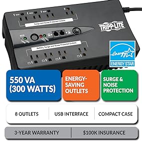 - Optimized Outlet Array: 4 outlets have both battery backup and surge/noise protection, and 4 have surge/noise protection without battery backup.
